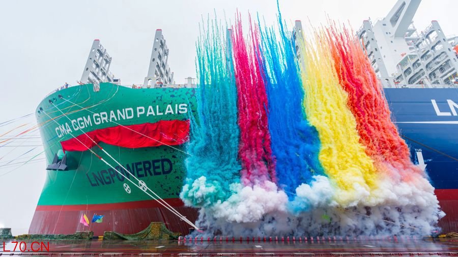3月17日,由中船集团旗下沪东中华造船(集团)有限公司建造的全球最大24000TEU级液化天然气(LNG)双燃料动力集装箱船“达飞 巴黎大皇宫”号,提前7个半月在上海长兴岛命名交付。这是沪东中华为法国达飞集团建造的第20艘大型集装箱船,将投入地中海航线运营,为全球贸易畅通注入新动能,为航运可持续发展贡献新力量。