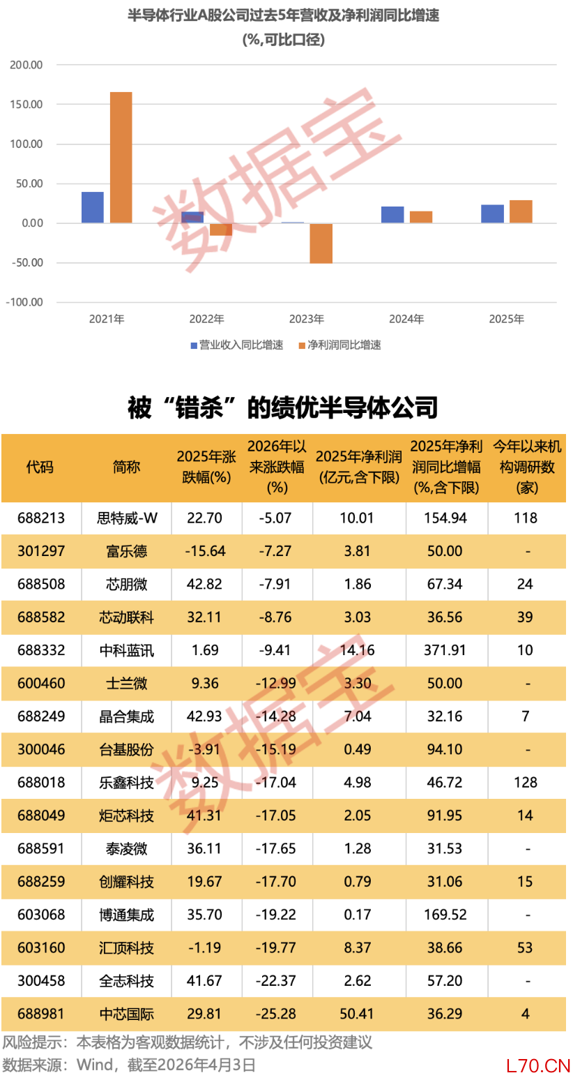 半导体行业营收及净利润加速增长 16只被“错杀”的绩优股曝光