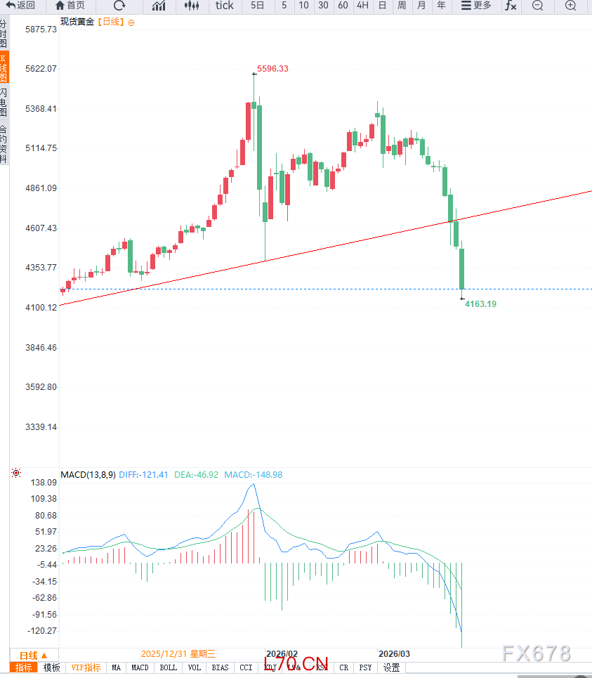 从支撑角度来看,市场普遍关注4100美元附近区域,该位置既是前期密集成交区,也是潜在心理支撑位。若价格在此区域企稳,可能触发短线多头回补,从而带来技术性反弹。但需要强调的是,在当前宏观环境未发生实质性变化之前,反弹持续性仍存疑。