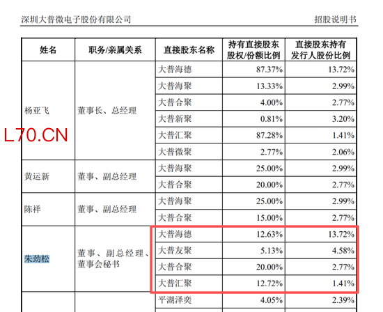 其实,在公司持股人员中,最为吸引人注意的则是公司副总兼董秘的朱劲松,他是从卖方首席成为转型的代表,在这波上市中赚的盆满钵满。金石杂谈查询发现,朱劲松通过大普海德、大普友聚等4个持股平台合计持有公司1.73%+0.235%+0.554%+0.18%=2.7%,对应市值27.27亿元。