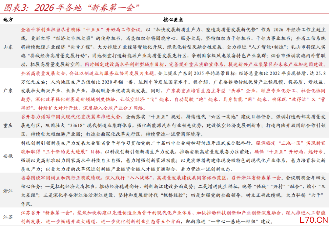 >三、广东、浙江、江苏多地召开“新春第一会”,锚定“十五五”开局之年,定基调、把方向、抓落实,多聚焦新质生产力、民营经济、高质量发展等;