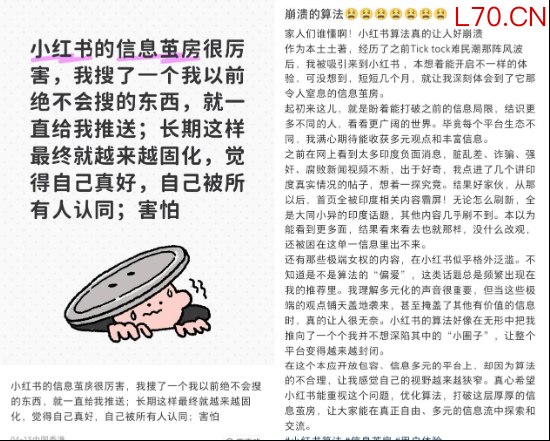事实上,关于小红书算法和推荐机制的问题,平台早有用户吐槽“被困在信息茧房”里。